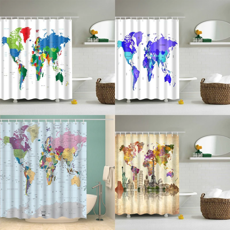 World Map Shower Curtain Waterproof Shower Curtain Colorful Eco