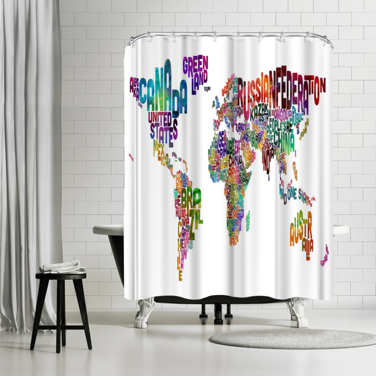 Americanflat 71″ x 74″ Modern Shower Curtain , World Map Word by