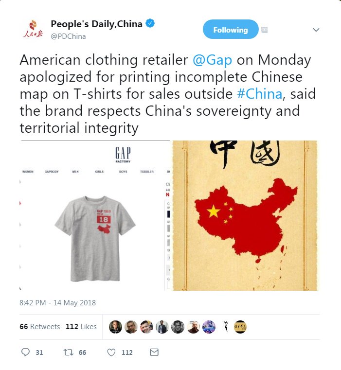 China Map On Gap T Shirt Draws Ire Of Chinese Officials YouTube