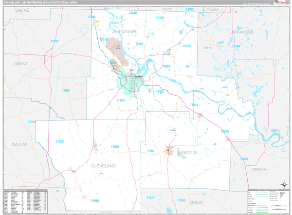 Pine Bluff, AR Metro Area Zip Code Wall Map Premium Style by