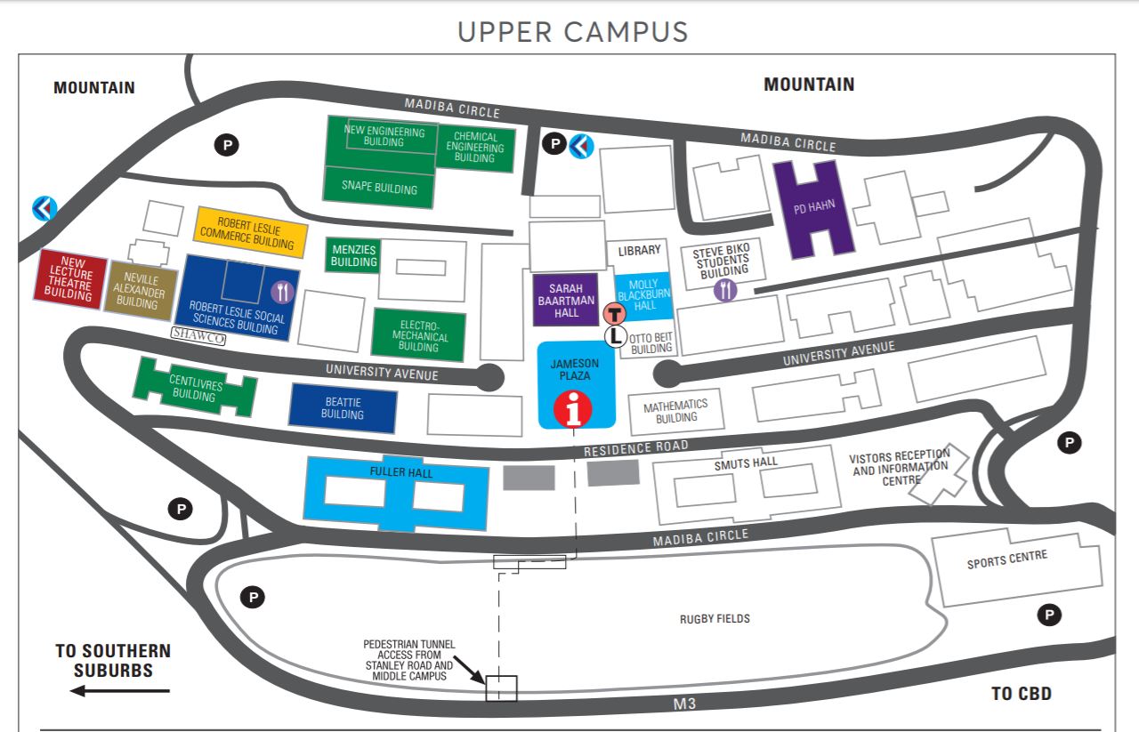 Uct Upper Campus Map Campus maps | University of Cape Town: When you open the Interactive Campus Map from a mobile device, use the hamburger menu in the upper left (three horizontal lines) to begin navigating. Clicking that menu will open Locations tab by . Clicking the WAYFINDING button in the map’s upper-left corner can help you navigate campus by displaying the walking path between a starting and ending location. To search for a location, click the .
