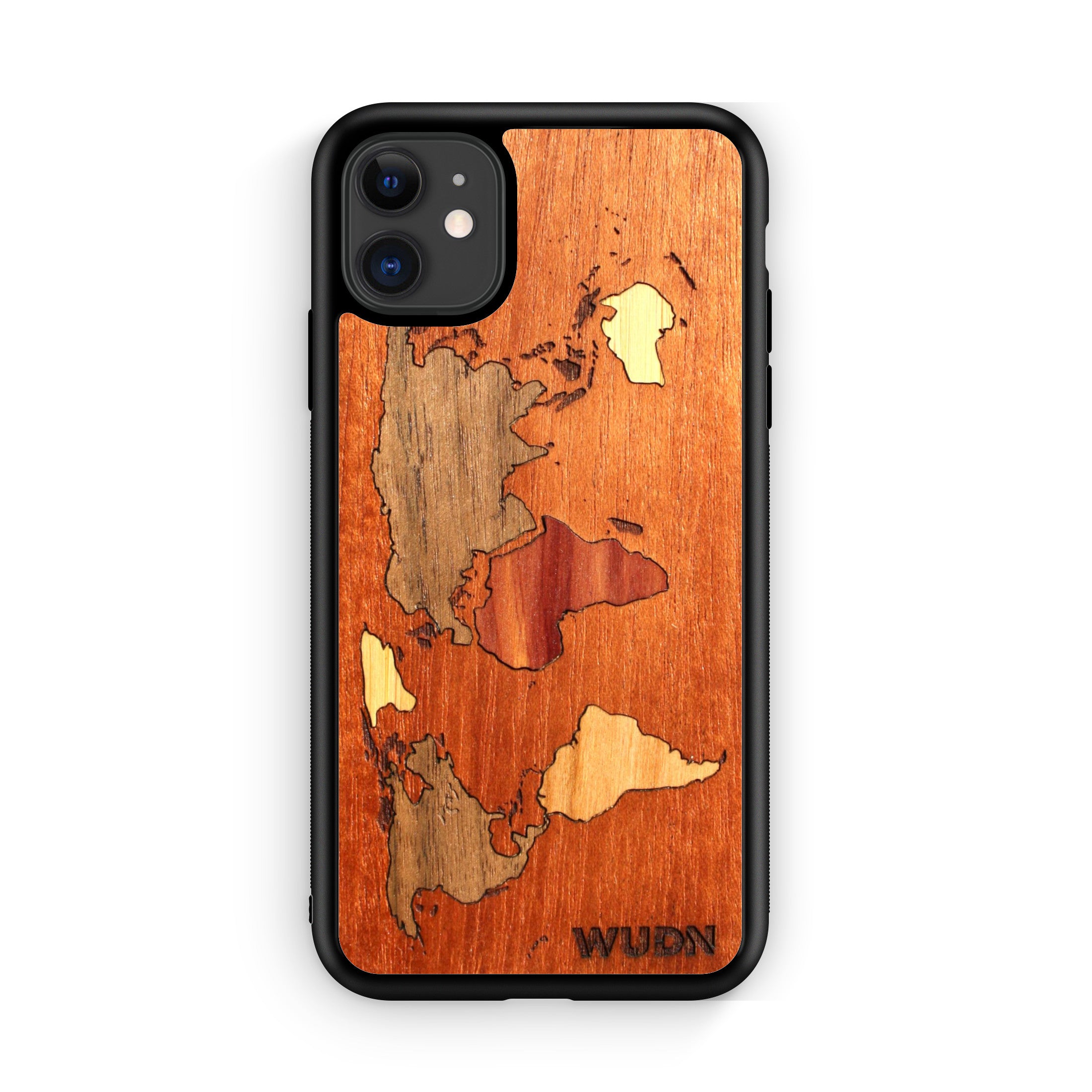 Wooden Phone Case World Map Inlay, Walnut & Bamboo